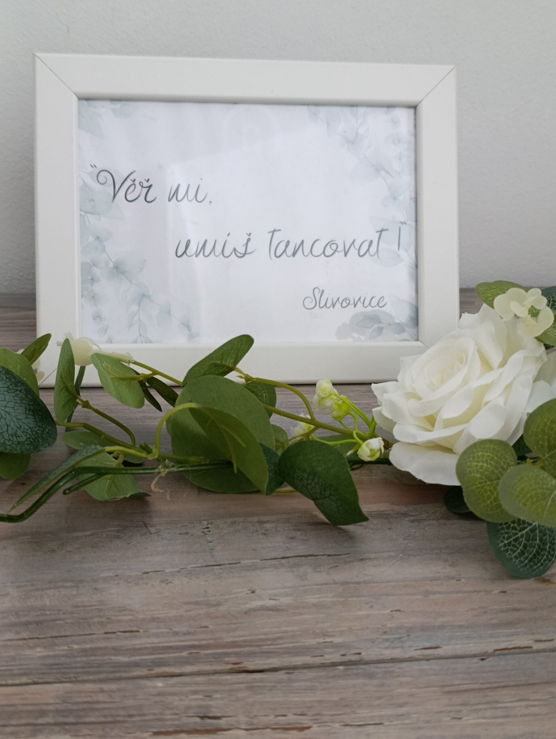 Rámeček bílý "Věř mi umíš tancovat, slivovice"